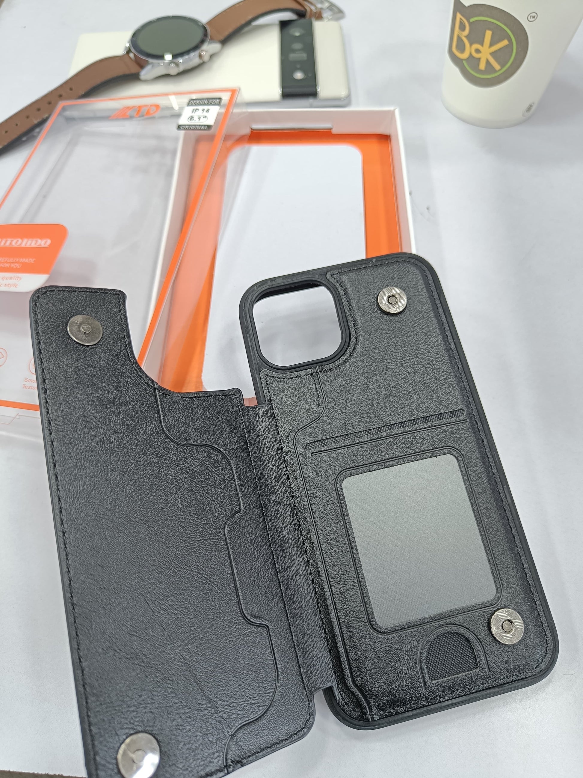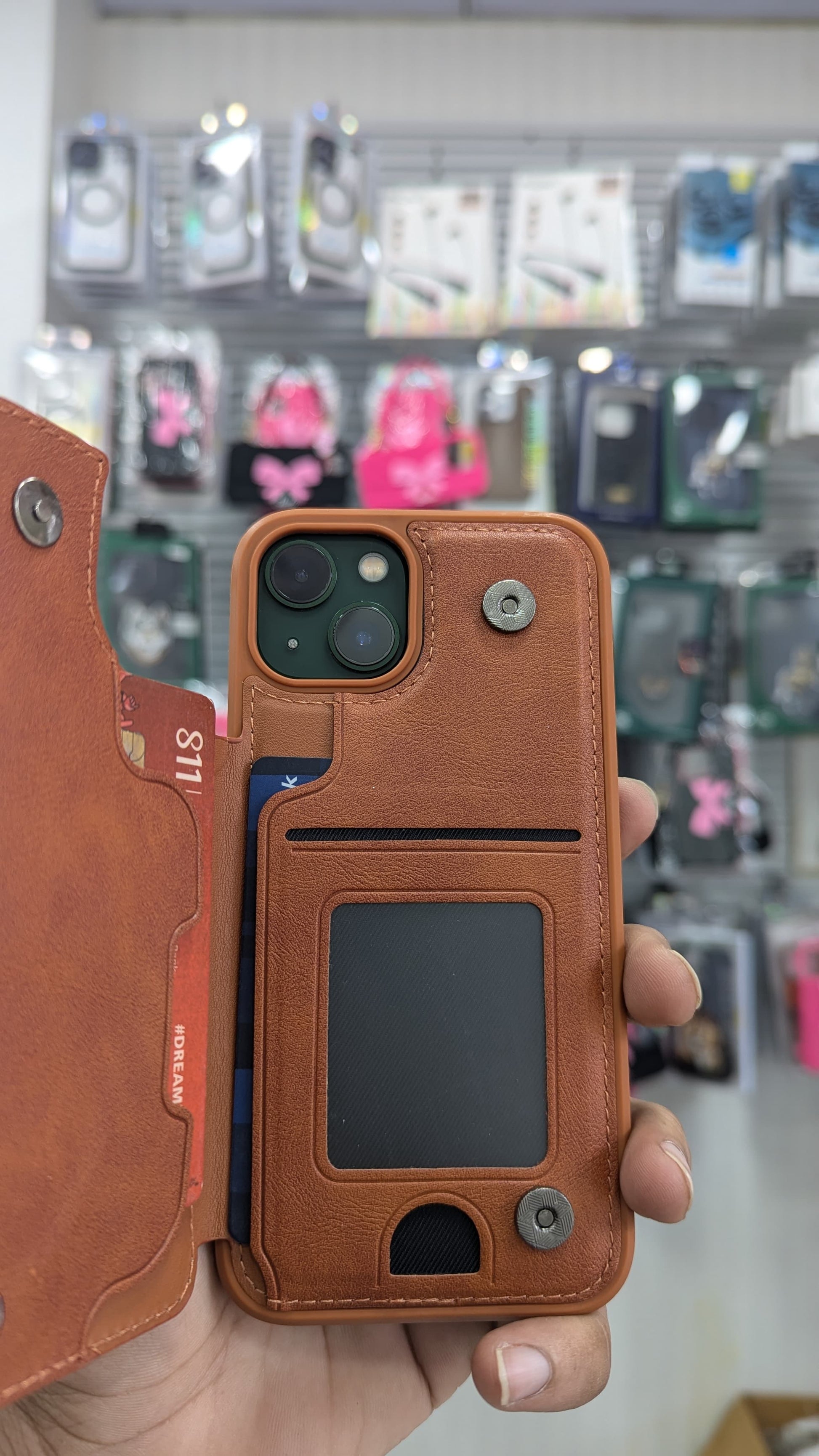 Luxury Wallet Style Premium Leather Case in a sleek new design for iPhone 14, iPhone 14 Plus, iPhone 15, iPhone 15 Plus