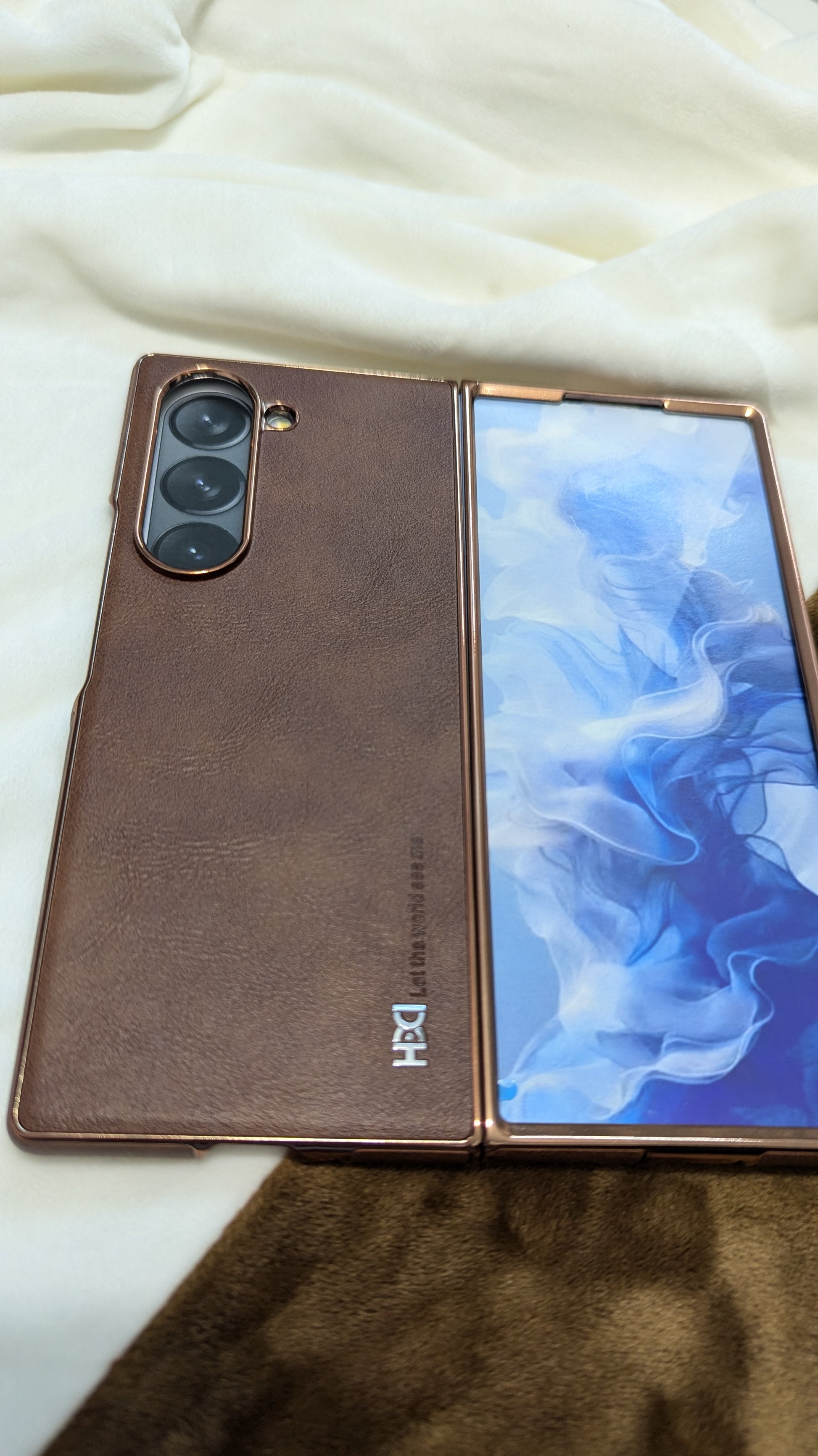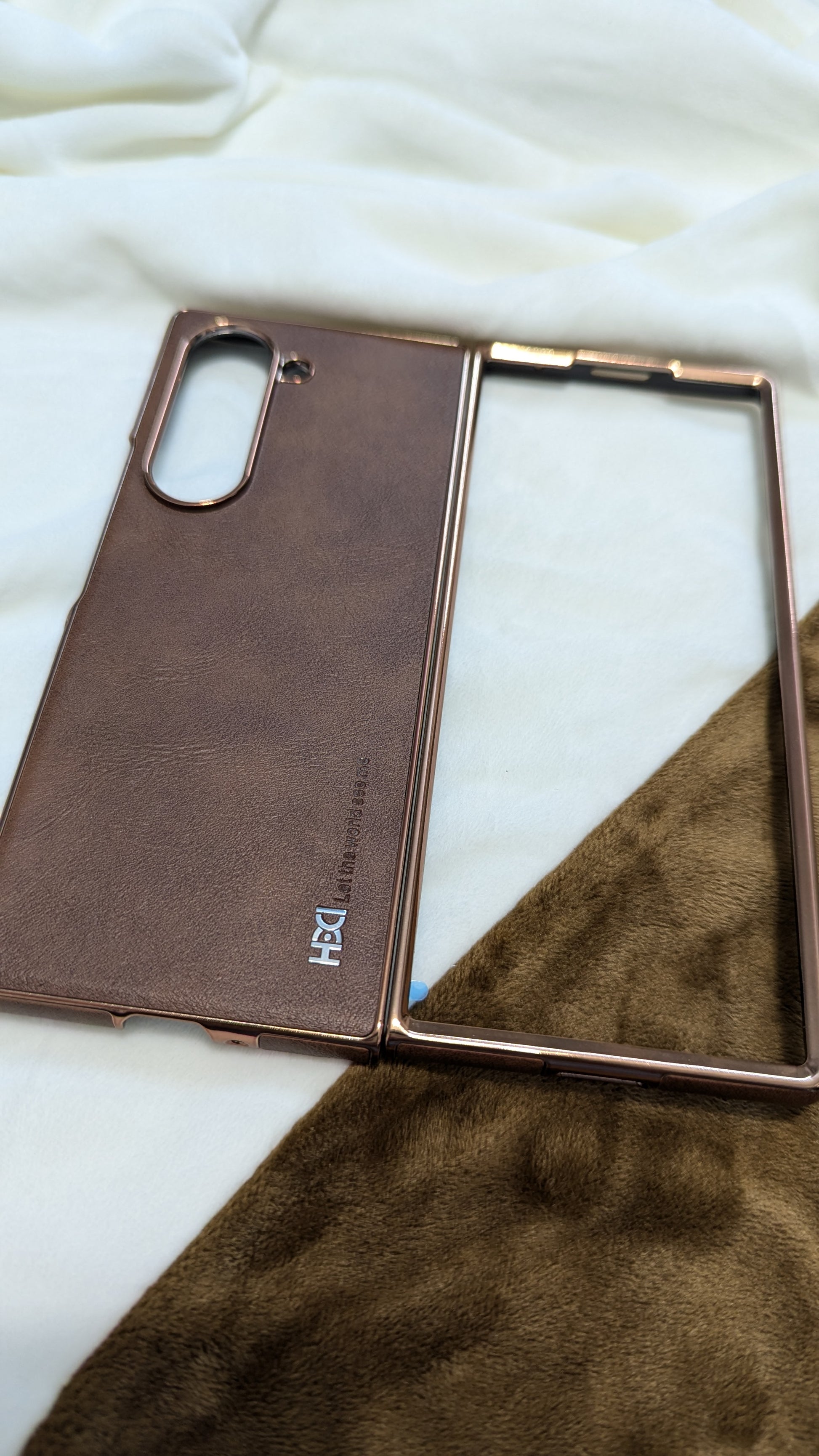 5. Genuine Leather Material: Made of premium leather material, it is comfortable to handle, durable, strong and wear resistant, prepared to use. Specification: Item Type: Phone Case Material: Leather Gross Weight: 40g / 1.4oz Applicable Model: for Galaxy Z Fold 4 folding phone How to Use: Install and use. Package List: 1 x Pair of Phone Case(Front Frame and Back Cover) 1 x Sample Leather